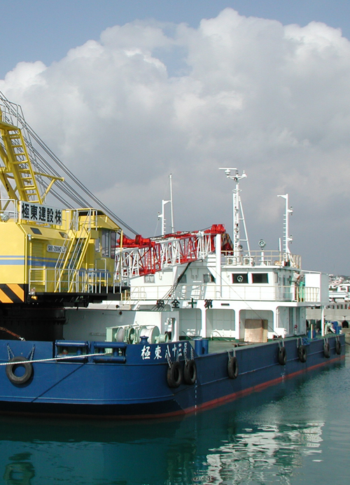 起重機船・スパット付きバックホウ浚渫船・クレーン付き作業台船・曳船・揚錨船・潜水士船