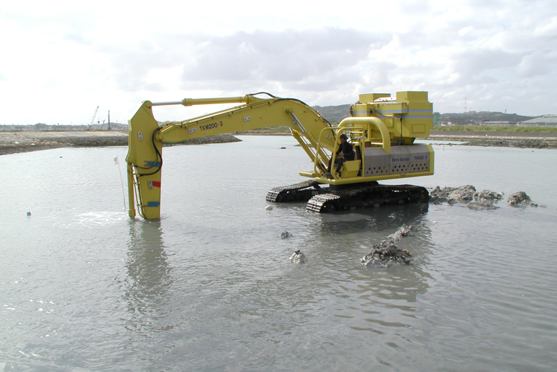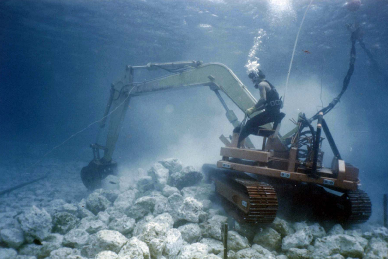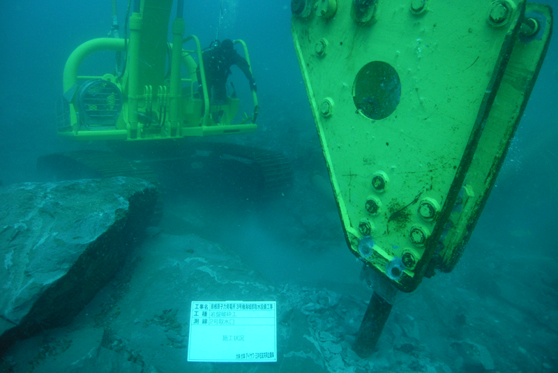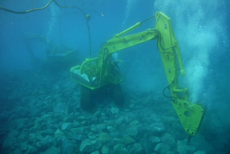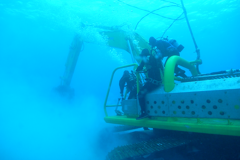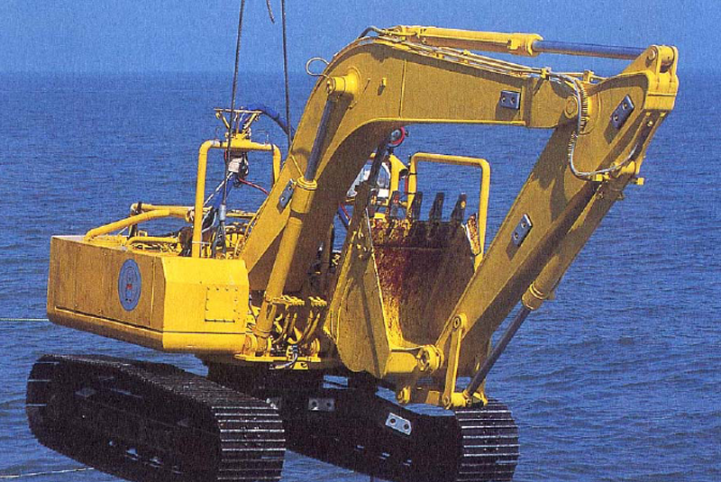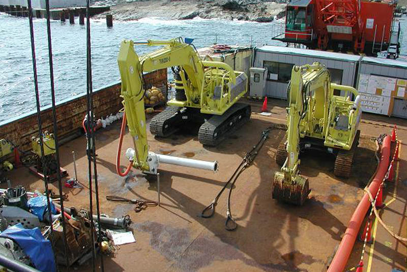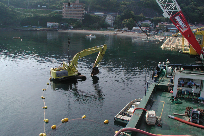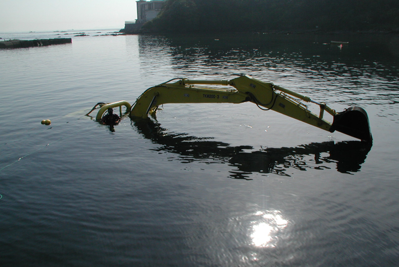 爆発物がある場合や潮流が速い等の困難な場合に水中バックホウは力を発揮します。